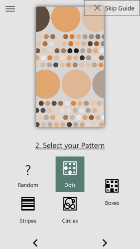 - New Pattern / Spread: "Squares", "Text", "Stripes" Spread: "Line"